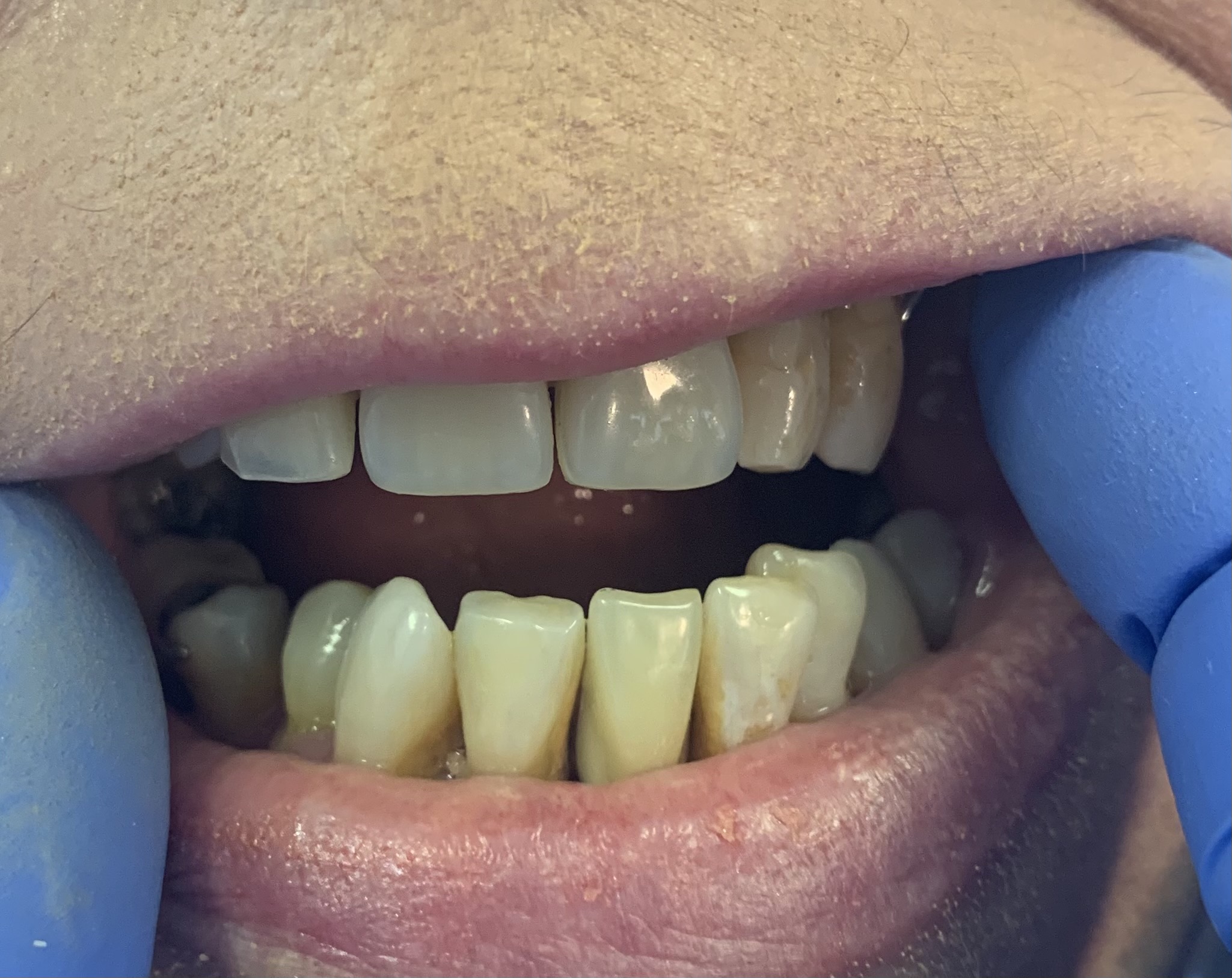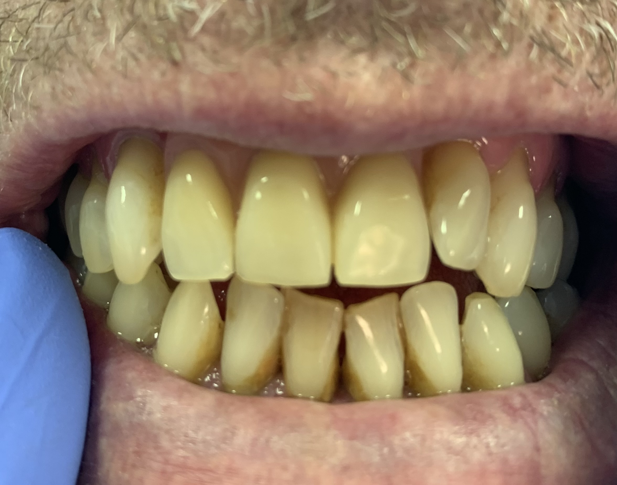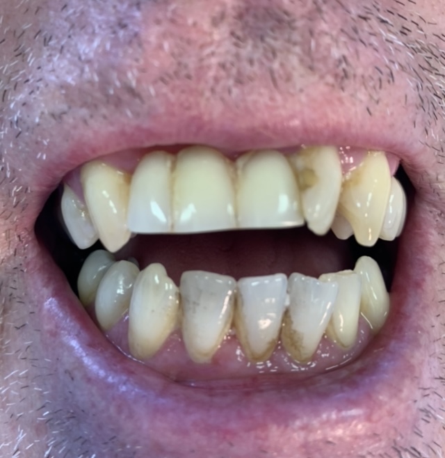 This patient had implants fitted abroad but was distraught with his appearance ... a complete rehabilitation of his bite and transformation of his smile using enigma overdentures on implants. We are delighted to be able to help patients like this regain their confidence