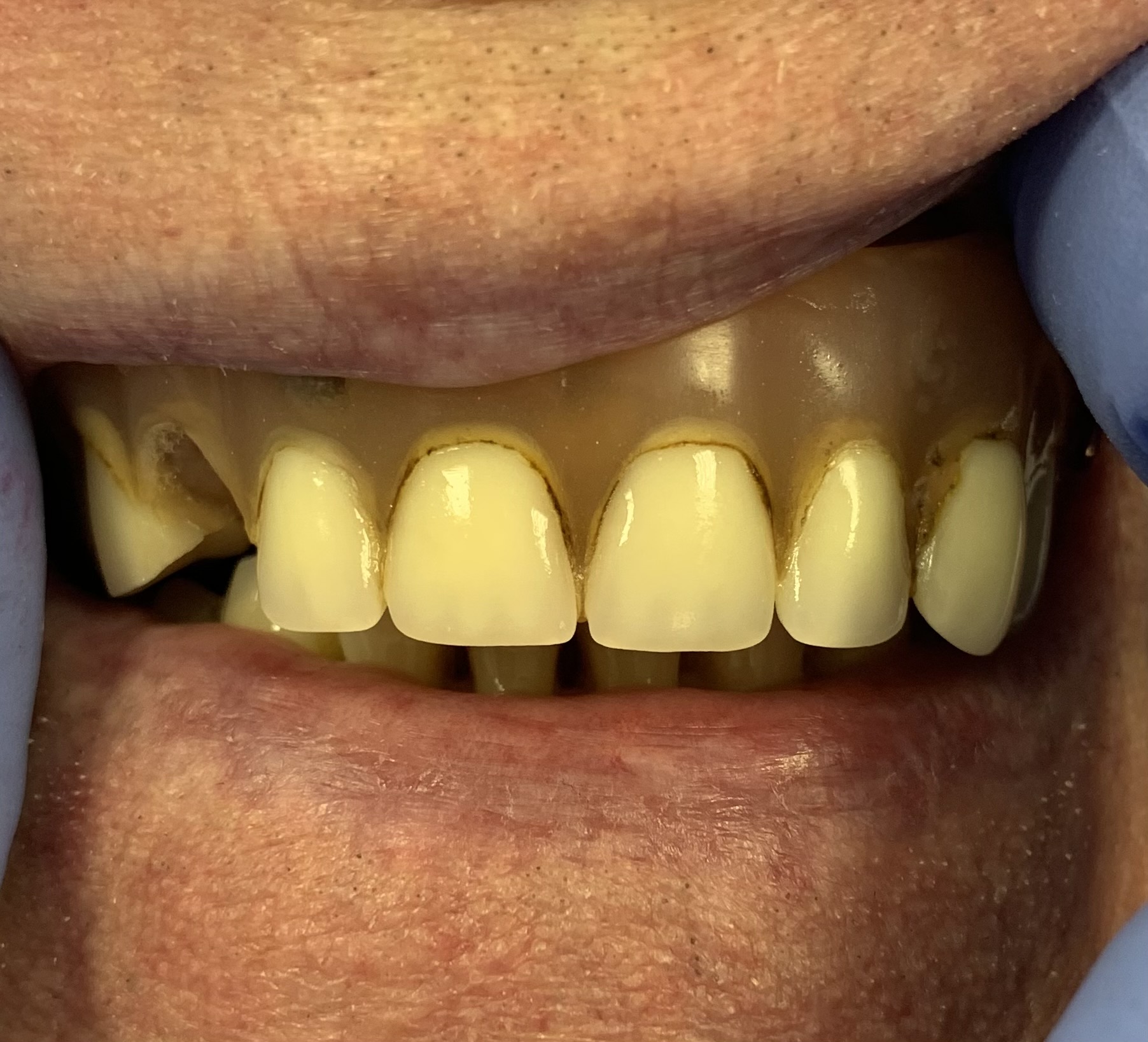 This patient was devastated having lost his lower teeth. After a try in to assess aesthetics the patient was quickly smiling again.