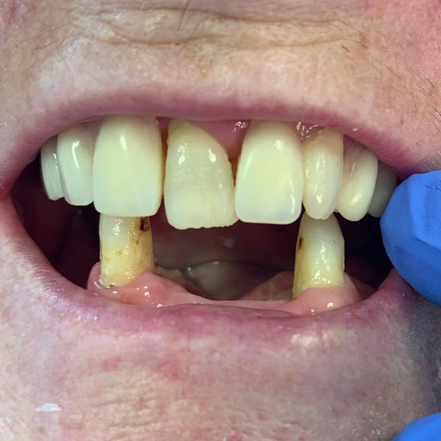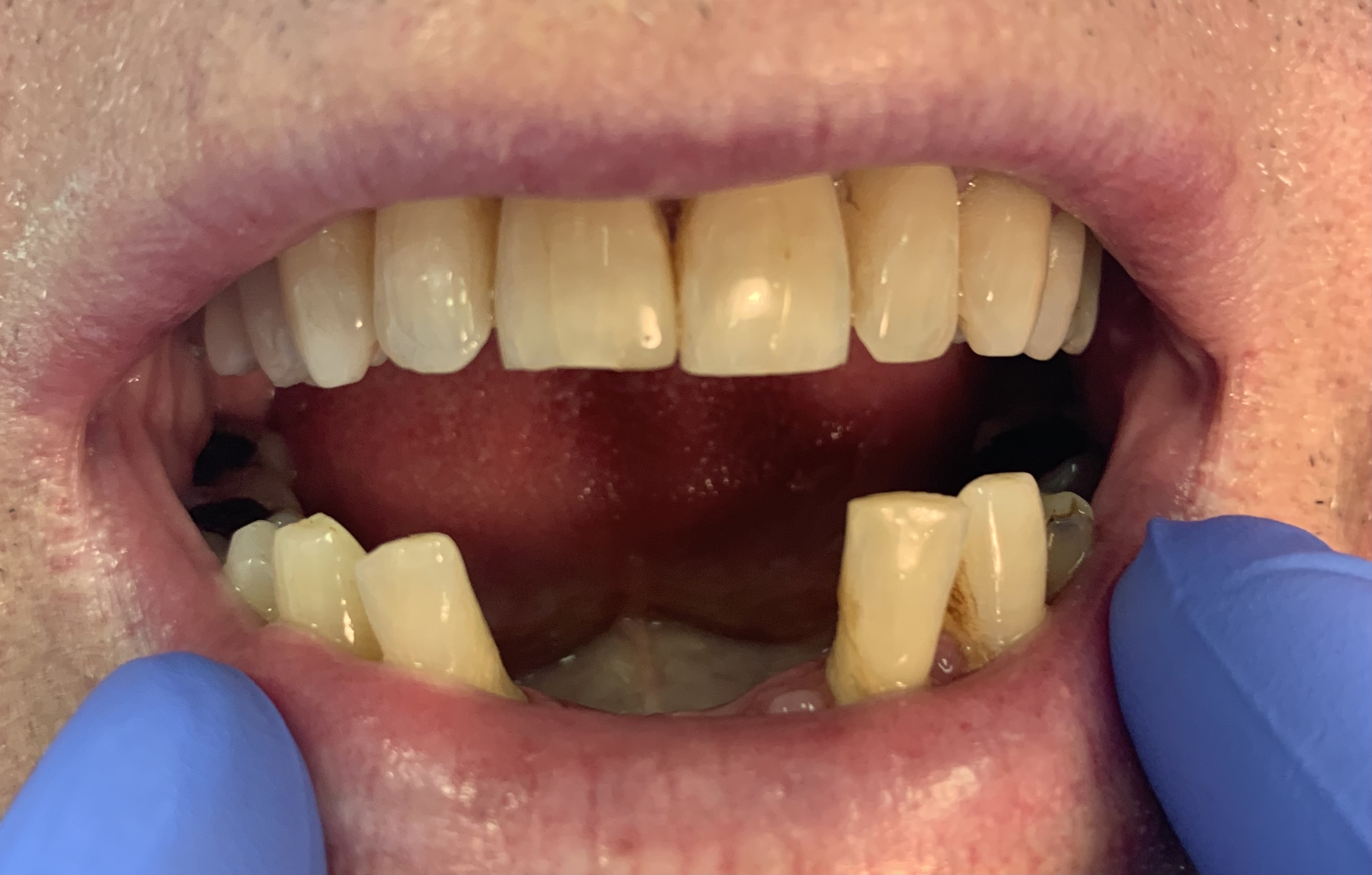 Dreadful partial upper replaced and aesthetics and function restored for this middle aged patient who couldn’t eat or smile.