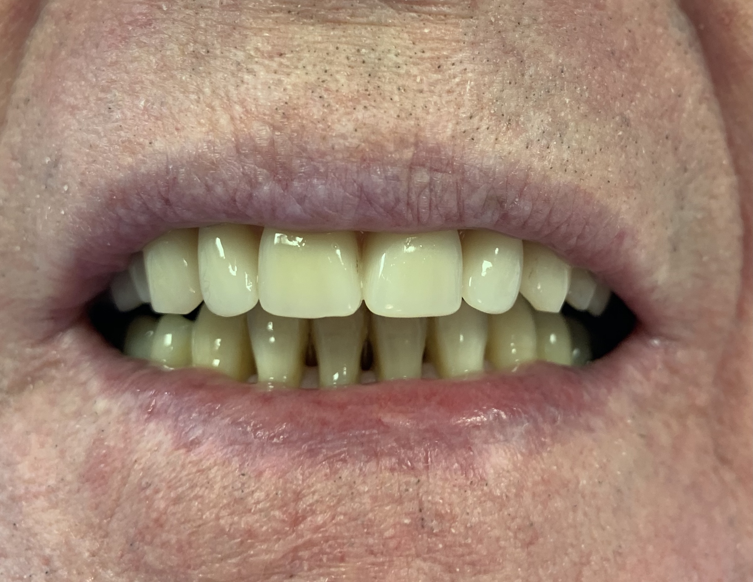 Patient wanted irregular “natural” teeth after wearing poor part upper for many years. We are pleased to say he was very happy.